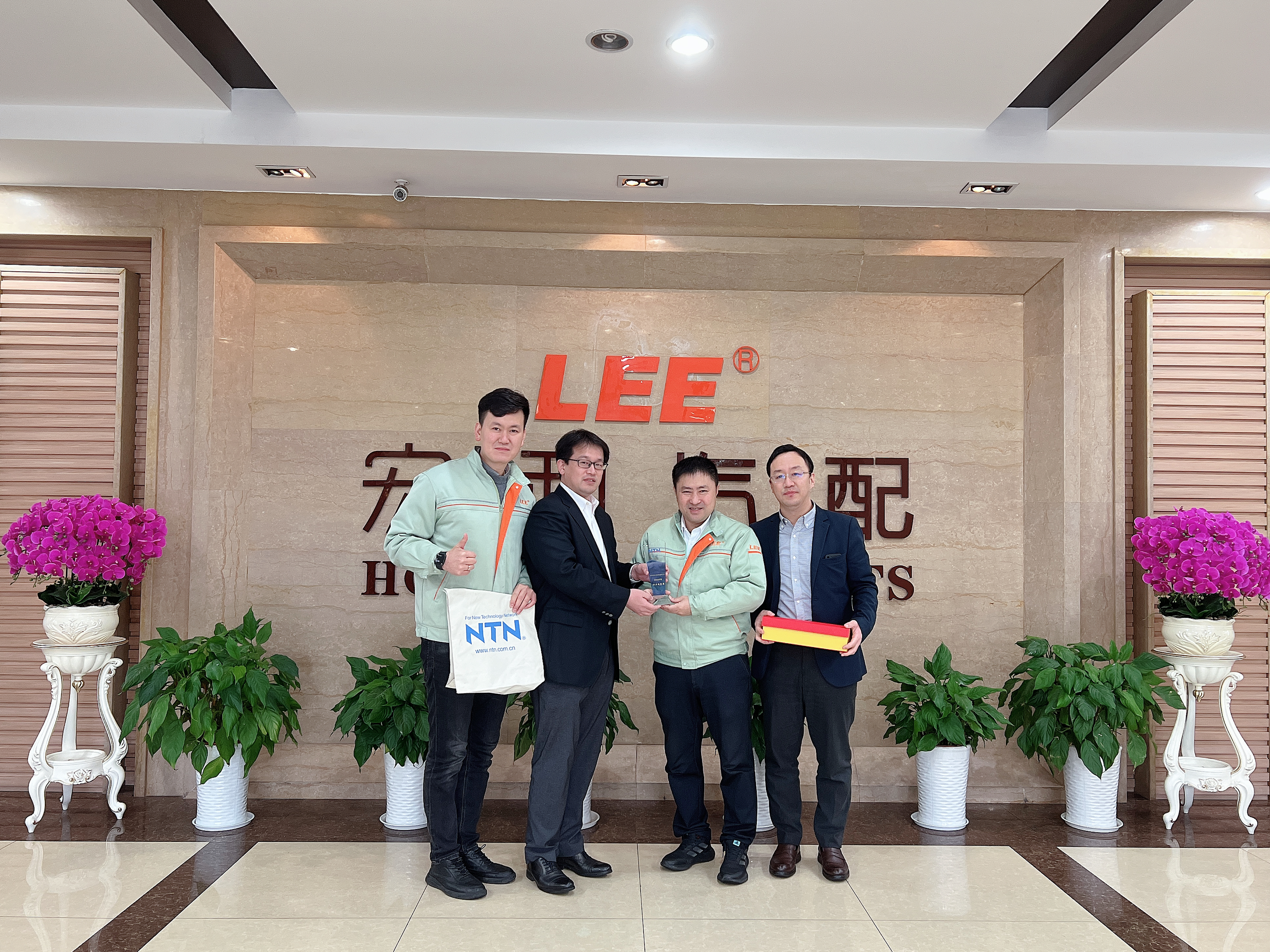 2月9日,NTN(中國)公司采購總監桐野泰一先生、采購經理曹呈先生專程蒞臨我司,授予宏利汽配集團"2022年度協力優秀獎"獎項。集團董事長李德進、營銷總監葉艷清熱情接待。