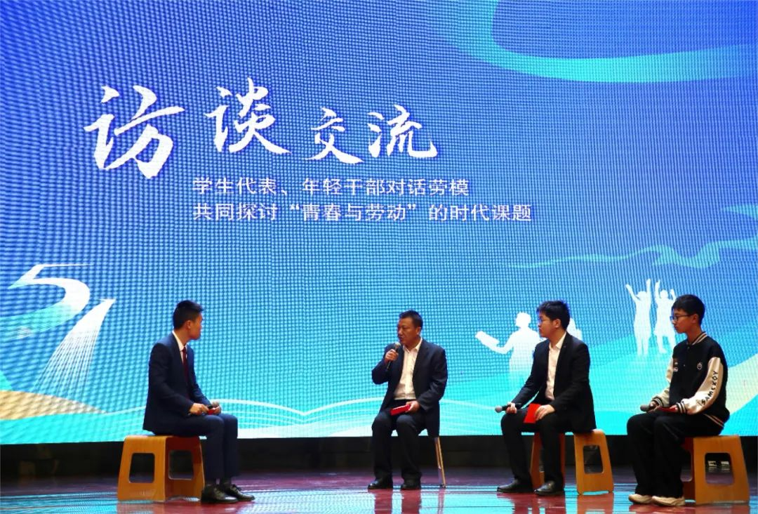 鵬飛集團(tuán)鉗工車間主任、江蘇省“五一”勞動(dòng)獎(jiǎng)?wù)芦@得者周步高與年輕干部代表、學(xué)生代表等開展微訪談學(xué)