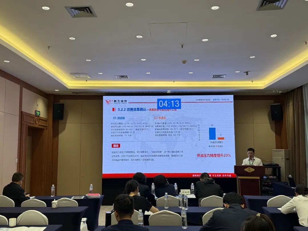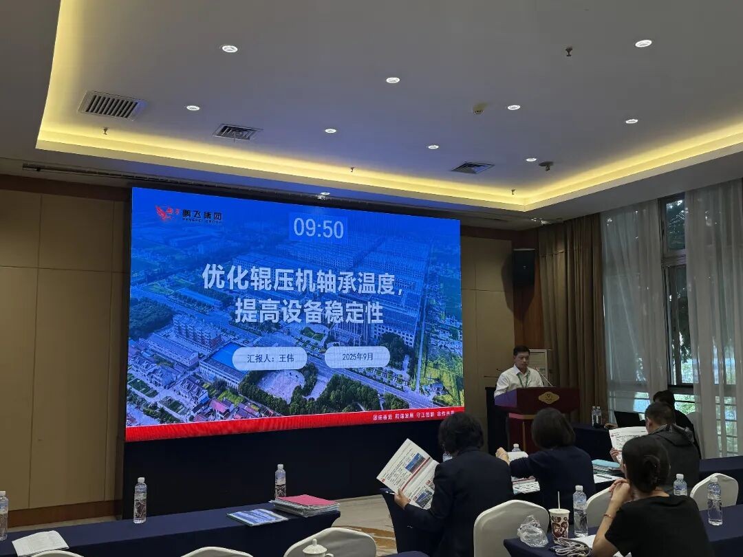 鵬飛集團(tuán)輥壓機(jī)QC小組發(fā)表成果《優(yōu)化輥壓機(jī)軸承溫度,提高設(shè)備穩(wěn)定性》。輥壓機(jī)QC小組圍繞輥壓機(jī)軸承溫度高、冷卻水流量不穩(wěn)定等問題,通過優(yōu)化冷卻水路和潤(rùn)滑系統(tǒng),規(guī)范安裝工藝。改進(jìn)后軸承溫度降至50℃以內(nèi),設(shè)備綜合效率提高7%,壽命延長(zhǎng)20%,顯著提升設(shè)備穩(wěn)定性,降低了能耗。