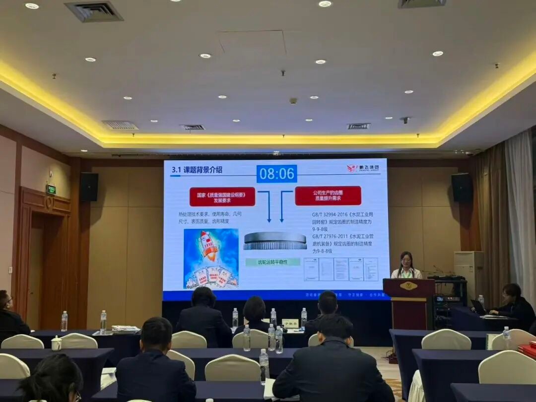 鵬飛金工QC小組發(fā)表成果《提高陽(yáng)極爐齒圈和滾圈傳動(dòng)連體一次加工合格率》。金工大齒輪組圍繞陽(yáng)極爐齒圈和滾圈轉(zhuǎn)動(dòng)連體加工中的變形和精度等問題,展開此次QC小組活動(dòng)。小組利用創(chuàng)新工法的制定與實(shí)施,不僅提升了一次加工合格率18.2%,縮短了加工周期,還保障了產(chǎn)品的穩(wěn)定性,節(jié)約了成本。